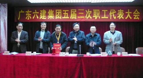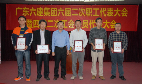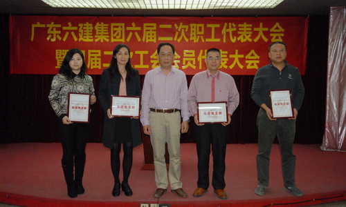 全国劳模获奖者黄文铮与市总领导、公司领导合照